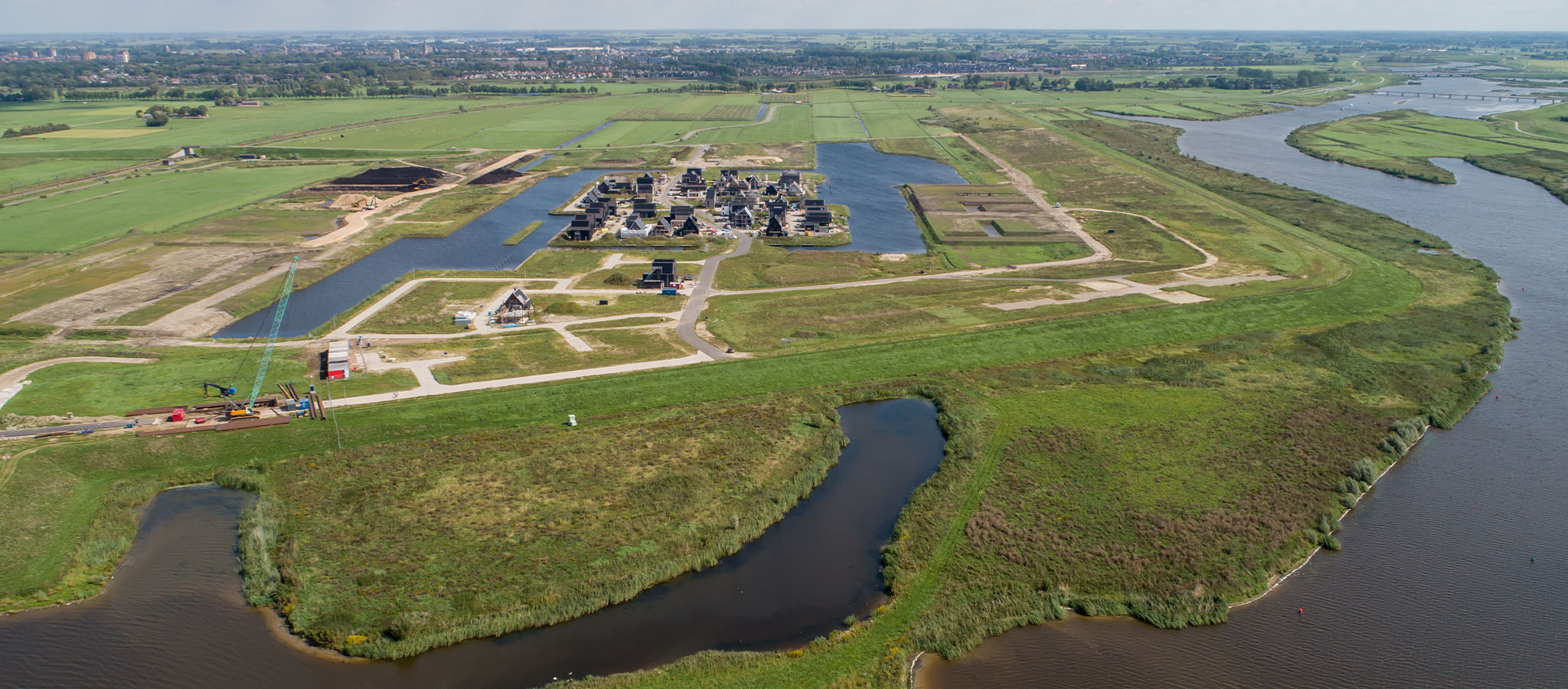 In het nieuwe dorp Reeve, vlak bij Kampen, krijg je de kans om op een unieke locatie te wonen. In De Werven woon je namelijk óp de eerste klimaatdijk van Nederland, met een vrij uitzicht en omringd door water en groen. Door de breedte van de ‘superdijk’ is het mogelijk dat er woningen op, tegenaan en half in de dijk worden gebouwd. De 34 woningen uit fase 1 van De Werven zijn ontworpen door KHV Architecten. Gerben ter Horst, directeur en architect bij KHV Architecten, vertelt: “Als je hier woont, ben je onderdeel van de natuur.”
